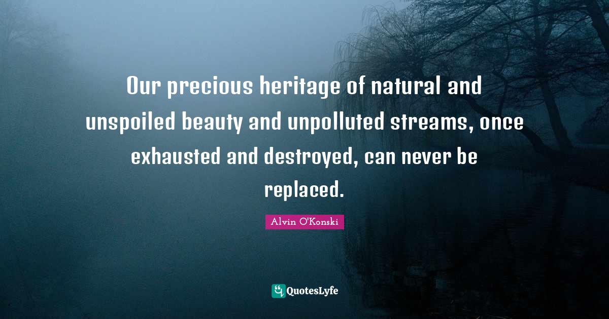 Our precious heritage of natural and unspoiled beauty and unpolluted streams, once exhausted and destroyed, can never be replaced.
