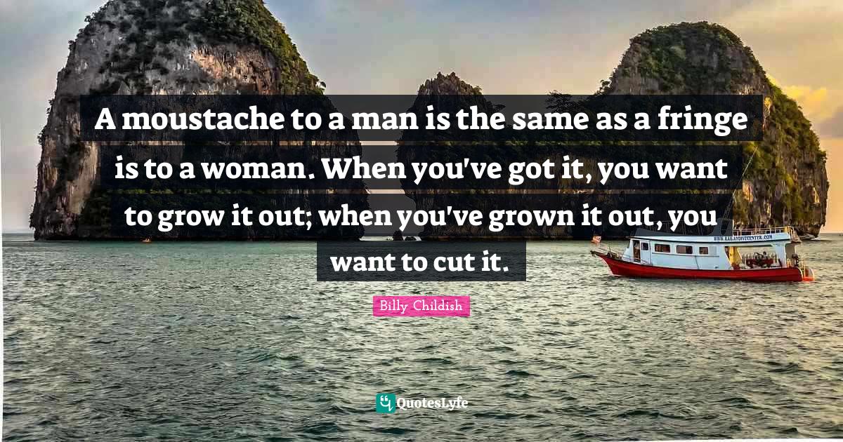 A moustache to a man is the same as a fringe is to a woman. When you've got it, you want to grow it out; when you've grown it out, you want to cut it.