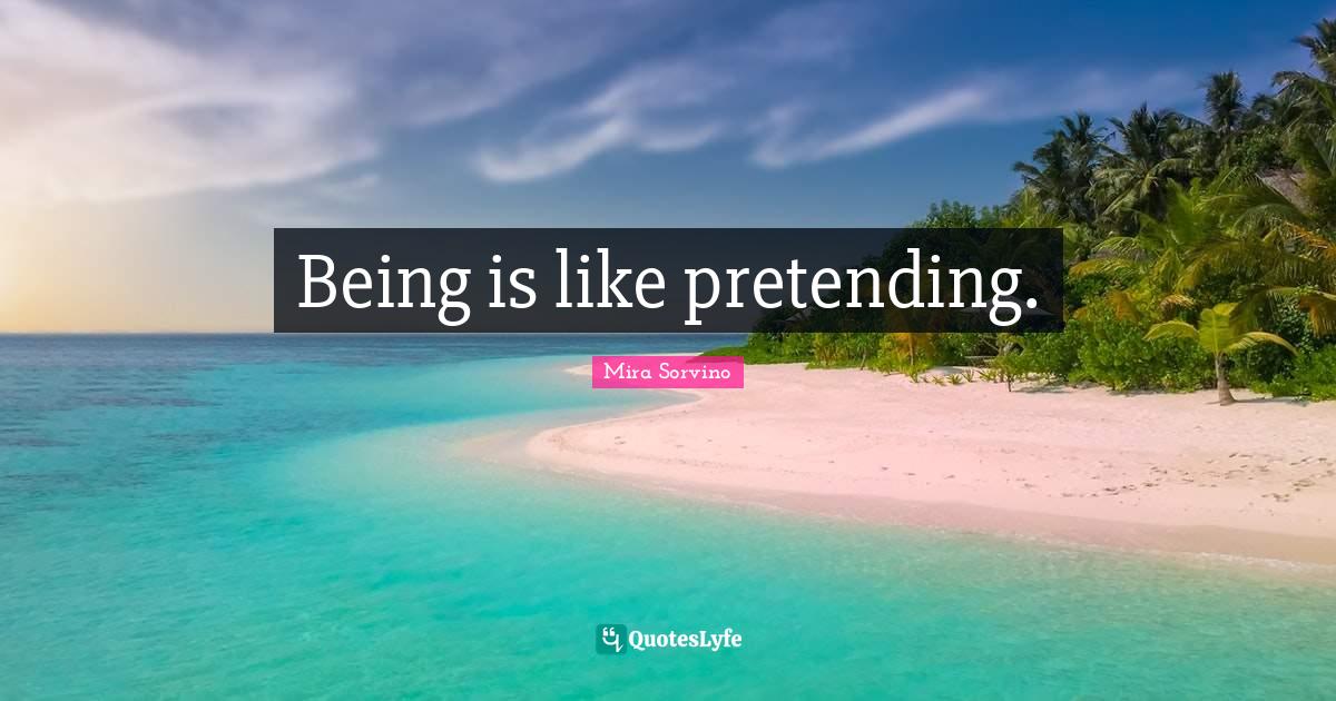 This page presents the quote "Being is like pretending.". Author of this quote is Mira Sorvino. This quote is about pretending,.