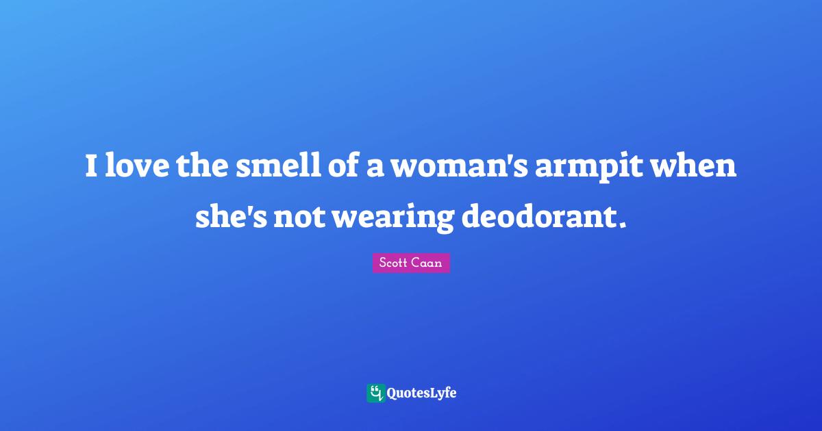 This page presents the quote "I love the smell of a woman's armpit when she's not wearing deodorant.". Author of this quote is Scott Caan. This quote is about armpits, deodorant, affection, love, smell,.