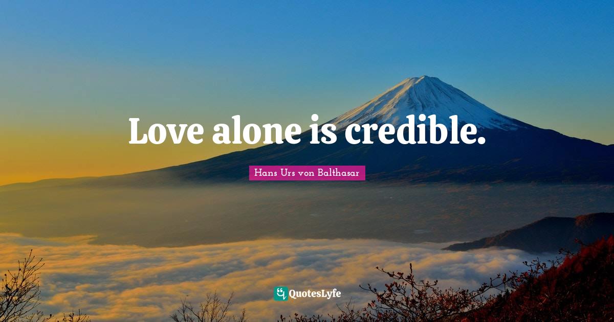 "Hans Urs von Balthasar Quotes." Quoteslyfe.com, 2026. Wed. 14 Jan. 2026. <https://www.quoteslyfe.com/quote/Love-alone-is-credible-635397>.
