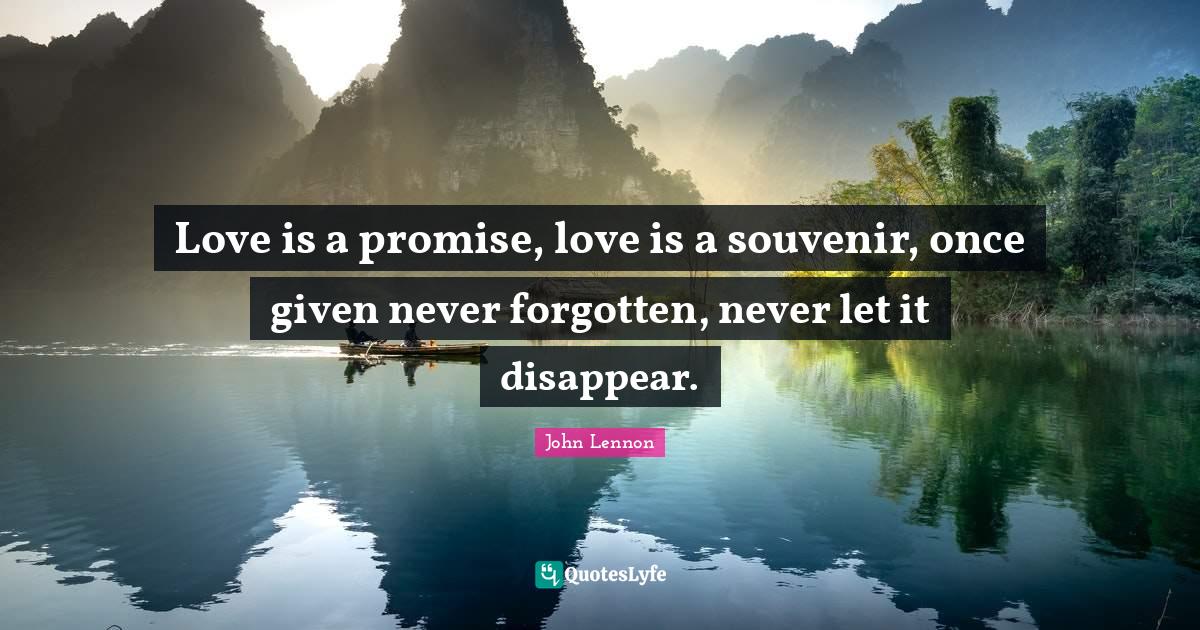 This page presents the quote "Love is a promise, love is a souvenir, once given never forgotten, never let it disappear.". Author of this quote is John Lennon. This quote is about love, affection,.