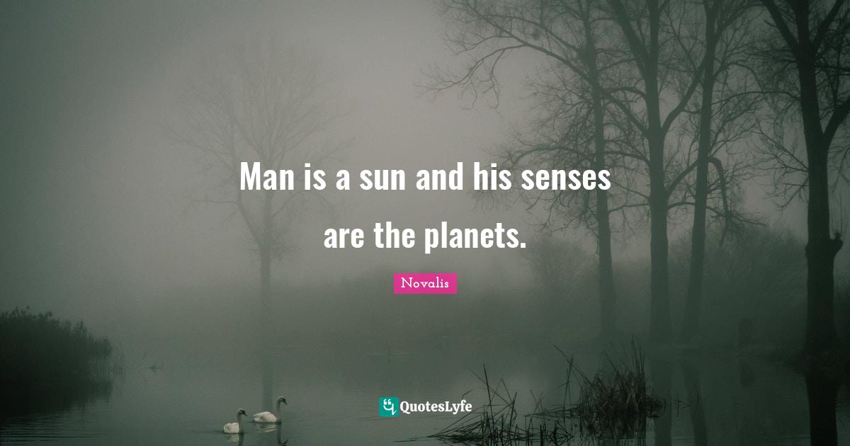 This page presents the quote "Man is a sun and his senses are the planets.". Author of this quote is Novalis. This quote is about planets, men, sun, senses,.