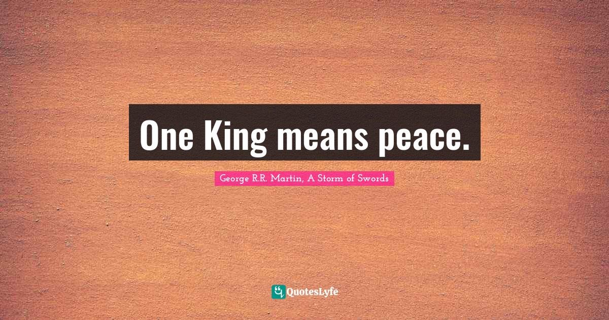 "George R.R. Martin, A Storm of Swords Quotes." Quoteslyfe.com, 2026. Tue. 13 Jan. 2026. <https://www.quoteslyfe.com/quote/One-King-means-peace-73537>.