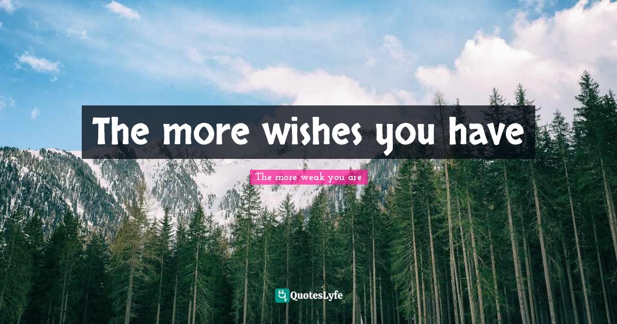"The more weak you are Quotes." Quoteslyfe.com, 2026. Tue. 13 Jan. 2026. <https://www.quoteslyfe.com/quote/The-more-wishes-you-have-253325>.