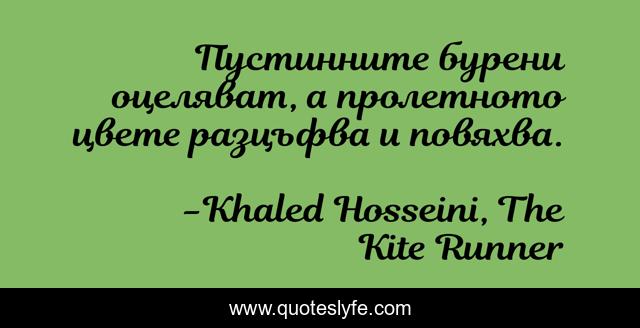 This page presents the quote "Пустинните бурени оцеляват, а пролетното цвете разцъфва и повяхва.". Author of this quote is Khaled Hosseini, The Kite Runner. .