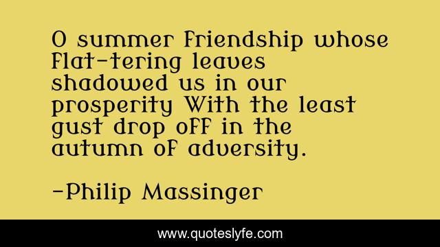 This page presents the quote "0 summer friendship whose flat-tering leaves shadowed us in our prosperity With the least gust drop off in the autumn of adversity.". Author of this quote is Philip Massinger. .