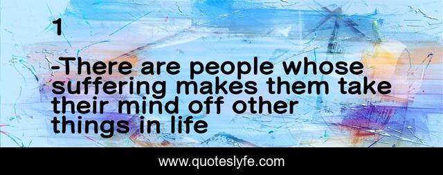 "There are people whose suffering makes them take their mind off other things in life Quotes." Quoteslyfe.com, 2025. Tue. 09 Dec. 2025. <https://www.quoteslyfe.com/quote/1-19815>.