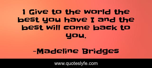 "Madeline Bridges Quotes." Quoteslyfe.com, 2025. Mon. 08 Dec. 2025. <https://www.quoteslyfe.com/quote/1-Give-to-the-world-the-best-273435>.
