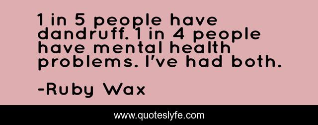 This page presents the quote "1 in 5 people have dandruff. 1 in 4 people have mental health problems. I've had both.". Author of this quote is Ruby Wax. This quote is about dandruff, rejection, mental-health-stigma, discrimination, mental-disorders, disease, bias, prejudice, stigma,.