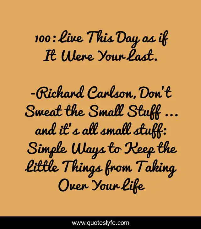 "Richard Carlson, Don't Sweat the Small Stuff ... and it's all small stuff: Simple Ways to Keep the Little Things from Taking Over Your Life Quotes." Quoteslyfe.com, 2025. Sat. 06 Dec. 2025. <https://www.quoteslyfe.com/quote/100-Live-This-Day-as-if-It-142234>.