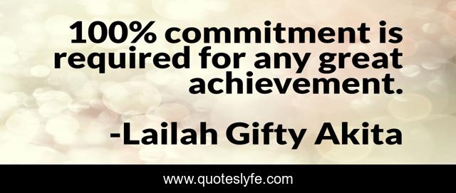This page presents the quote "100% commitment is required for any great achievement.". Author of this quote is Lailah Gifty Akita. This quote is about commitment, positive-thinking, failure, achievement-success, enthusiasm, never-give-up,.
