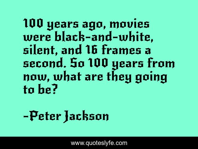 This page presents the quote "100 years ago, movies were black-and-white, silent, and 16 frames a second. So 100 years from now, what are they going to be?". Author of this quote is Peter Jackson. This quote is about black-and-white, silent,.