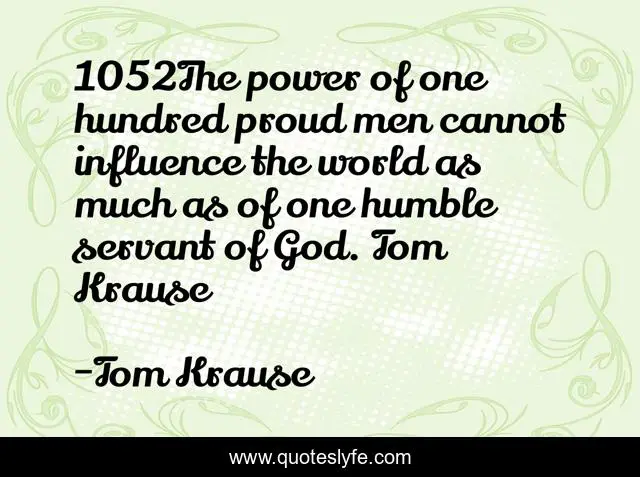 This page presents the quote "1052The power of one hundred proud men cannot influence the world as much as of one humble servant of God. Tom Krause". Author of this quote is Tom Krause. .