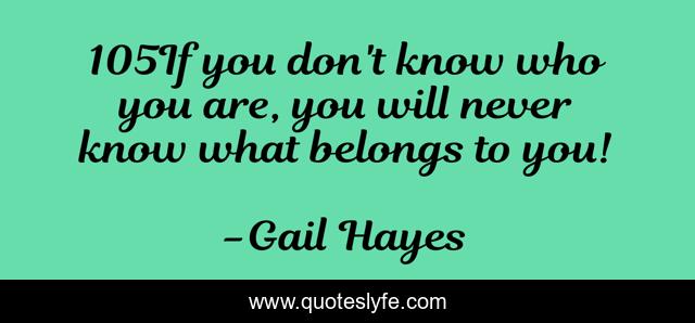 This page presents the quote "105If you don't know who you are, you will never know what belongs to you!". Author of this quote is Gail Hayes. This quote is about image, life-and-living, purpose-of-life, destiny, inspiration,.