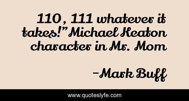 This page presents the quote "110, 111 whatever it takes!"Michael Keaton character in Mr. Mom". Author of this quote is Mark Buff. This quote is about funny, humor, humour, humorous, funny-humor, comedy,.