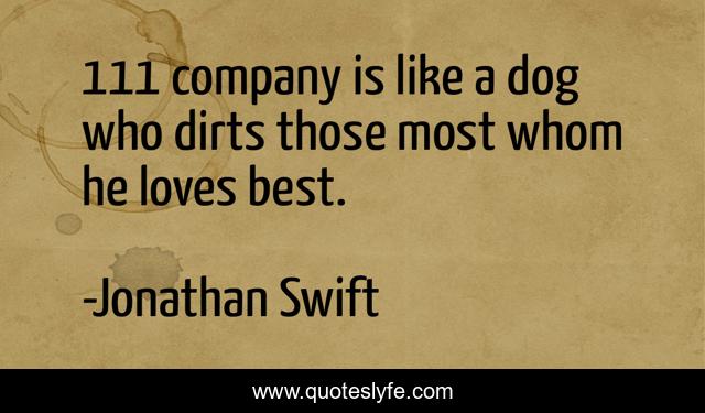 This page presents the quote "111 company is like a dog who dirts those most whom he loves best.". Author of this quote is Jonathan Swift. .