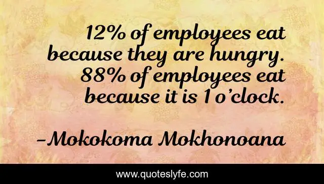 "Mokokoma Mokhonoana Quotes." Quoteslyfe.com, 2025. Mon. 08 Dec. 2025. <https://www.quoteslyfe.com/quote/12-of-employees-eat-because-they-are-168318>.