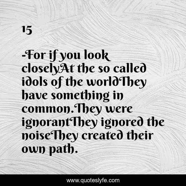"For if you look closelyAt the so called idols of the worldThey have something in common.They were ignorantThey ignored the noiseThey created their own path. Quotes." Quoteslyfe.com, 2025. Mon. 08 Dec. 2025. <https://www.quoteslyfe.com/quote/15-109726>.