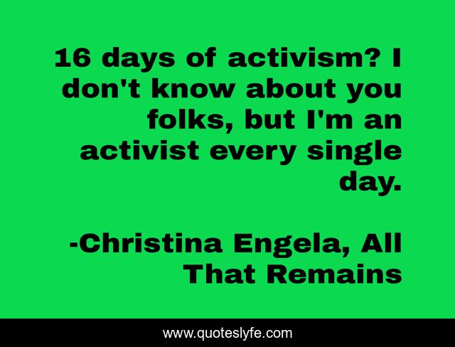 This page presents the quote "16 days of activism? I don't know about you folks, but I'm an activist every single day.". Author of this quote is Christina Engela, All That Remains. This quote is about folks, activism, activist,.