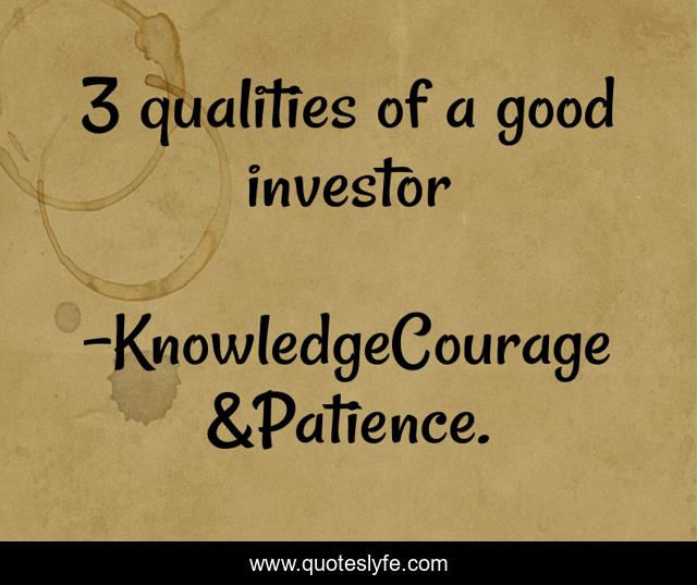 This page presents the quote "3 qualities of a good investor". Author of this quote is KnowledgeCourage &Patience.. .