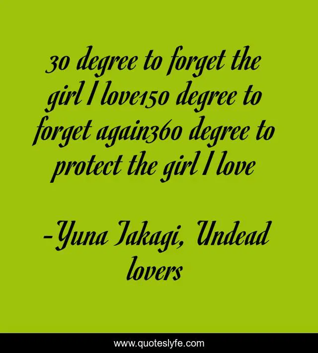 This page presents the quote "30 degree to forget the girl I love150 degree to forget again360 degree to protect the girl I love". Author of this quote is Yuna Takagi, Undead lovers. .