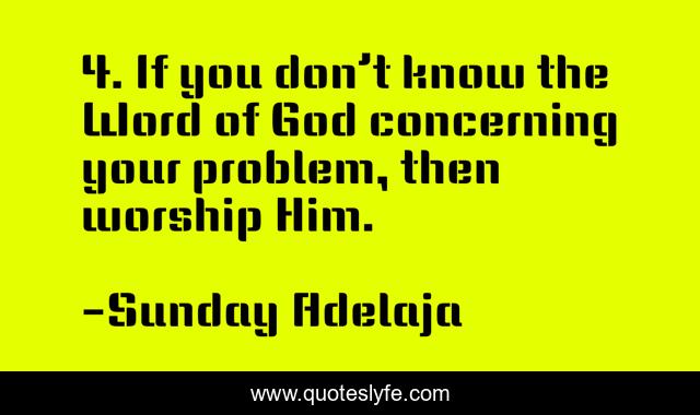 This page presents the quote "4. If you don’t know the Word of God concerning your problem, then worship Him.". Author of this quote is Sunday Adelaja. This quote is about worship, prayer,.