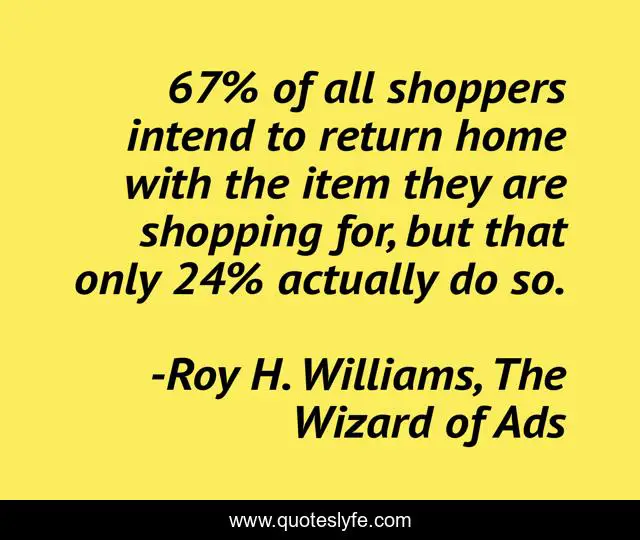 "Roy H. Williams, The Wizard of Ads Quotes." Quoteslyfe.com, 2025. Fri. 05 Dec. 2025. <https://www.quoteslyfe.com/quote/67-of-all-shoppers-intend-to-return-128358>.