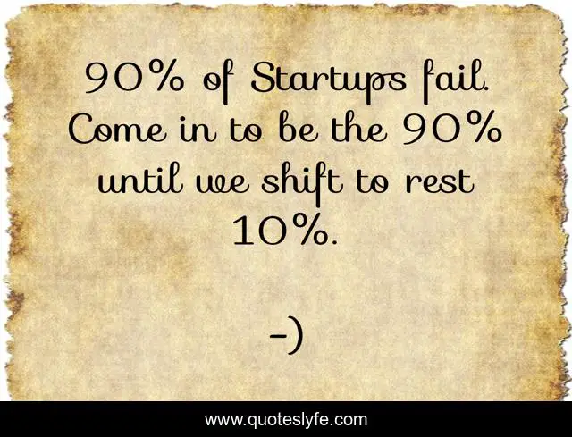 This page presents the quote "90% of Startups fail. Come in to be the 90% until we shift to rest 10%.". Author of this quote is ). .
