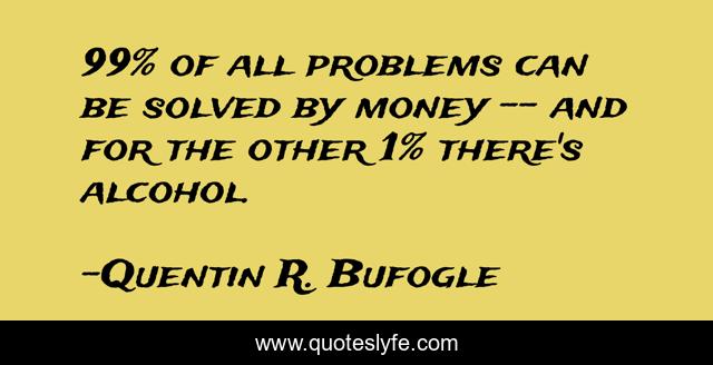 This page presents the quote "99% of all problems can be solved by money -- and for the other 1% there's alcohol.". Author of this quote is Quentin R. Bufogle. This quote is about 1-percent, 99-percent, money-happiness, alcohol, humorous, money, money-issues, drinking,.