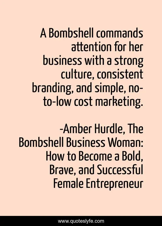 "Amber Hurdle, The Bombshell Business Woman: How to Become a Bold, Brave, and Successful Female Entrepreneur Quotes." Quoteslyfe.com, 2025. Fri. 05 Dec. 2025. <https://www.quoteslyfe.com/quote/A-Bombshell-commands-attention-for-her-business-160824>.