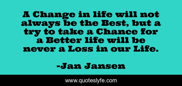 This page presents the quote "A Change in life will not always be the Best, but a try to take a Chance for a Better life will be never a Loss in our Life.". Author of this quote is Jan Jansen. .