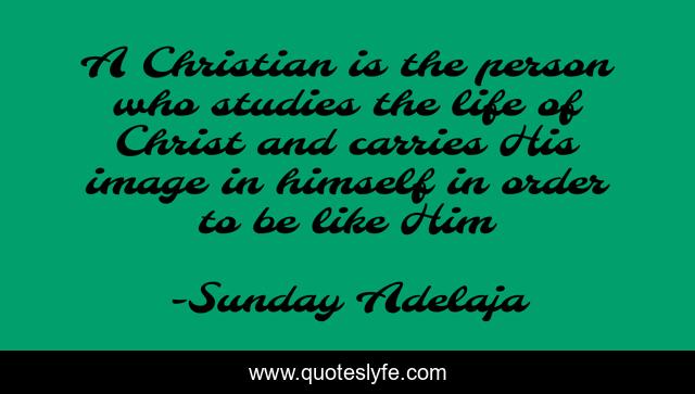 This page presents the quote "A Christian is the person who studies the life of Christ and carries His image in himself in order to be like Him". Author of this quote is Sunday Adelaja. This quote is about person, himself, christian, order,.