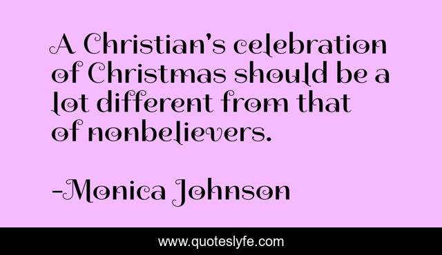 This page presents the quote "A Christian's celebration of Christmas should be a lot different from that of nonbelievers.". Author of this quote is Monica Johnson. This quote is about christian, celebration,.