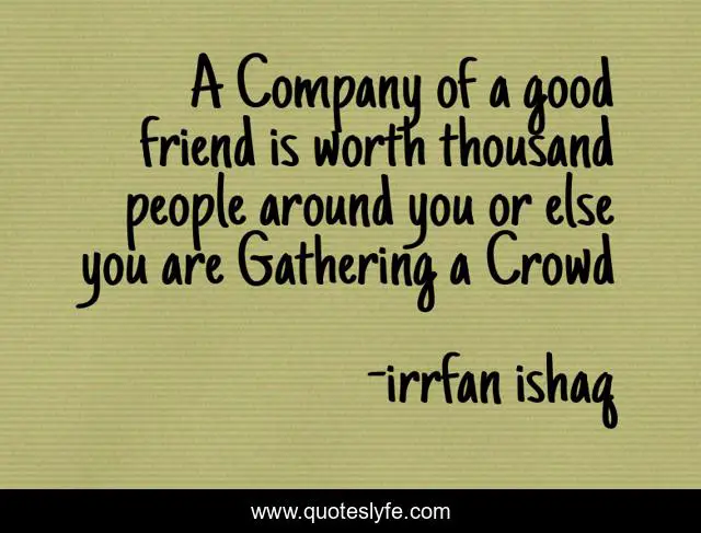 This page presents the quote "A Company of a good friend is worth thousand people around you or else you are Gathering a Crowd". Author of this quote is irrfan ishaq. This quote is about life, love, philosophy, truth, friendship, affection,.