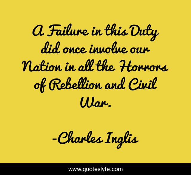 This page presents the quote "A Failure in this Duty did once involve our Nation in all the Horrors of Rebellion and Civil War.". Author of this quote is Charles Inglis. This quote is about failure, rebellion, nation,.