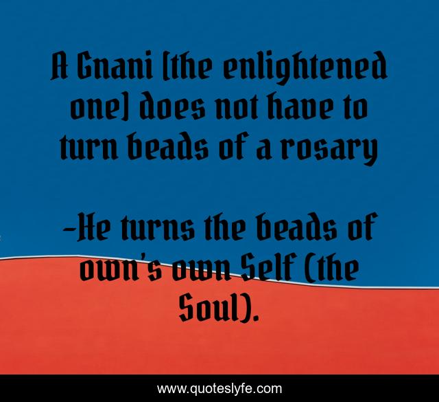 This page presents the quote "A Gnani [the enlightened one] does not have to turn beads of a rosary". Author of this quote is He turns the beads of own’s own Self (the Soul).. .