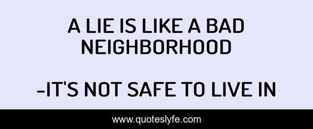 "IT'S NOT SAFE TO LIVE IN Quotes." Quoteslyfe.com, 2025. Tue. 09 Dec. 2025. <https://www.quoteslyfe.com/quote/A-LIE-IS-LIKE-A-BAD-NEIGHBORHOOD-77778>.