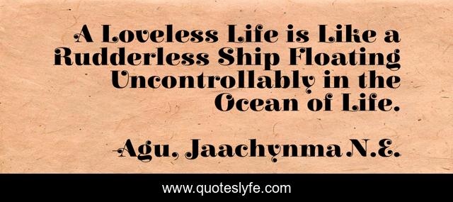 This page presents the quote "A Loveless Life is Like a Rudderless Ship Floating Uncontrollably in the Ocean of Life.". Author of this quote is Agu, Jaachynma N.E.. This quote is about greatness-in-you, goodness, success,.