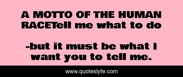 "but it must be what I want you to tell me. Quotes." Quoteslyfe.com, 2025. Fri. 05 Dec. 2025. <https://www.quoteslyfe.com/quote/A-MOTTO-OF-THE-HUMAN-RACETell-me-103517>.