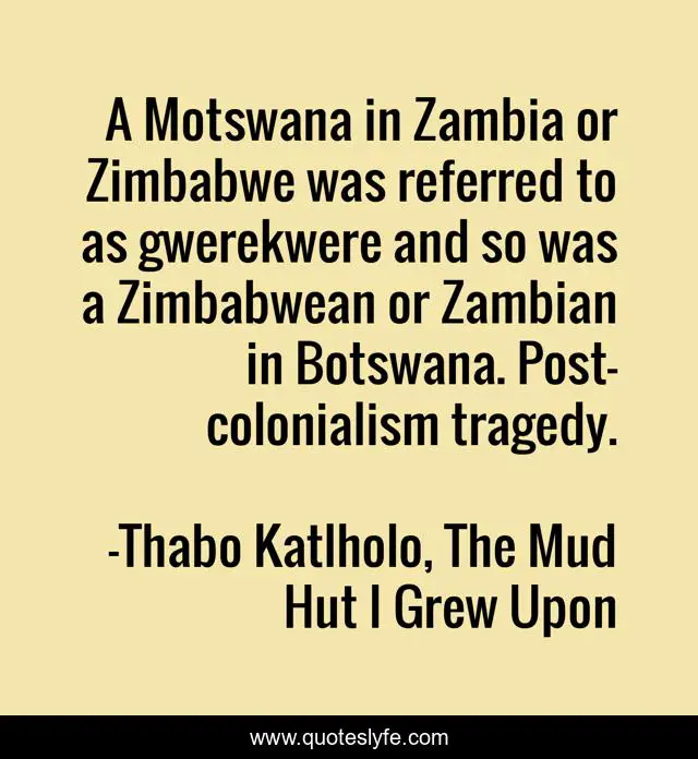 "Thabo Katlholo, The Mud Hut I Grew Upon Quotes." Quoteslyfe.com, 2025. Tue. 09 Dec. 2025. <https://www.quoteslyfe.com/quote/A-Motswana-in-Zambia-or-Zimbabwe-was-242410>.
