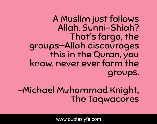 "Michael Muhammad Knight, The Taqwacores Quotes." Quoteslyfe.com, 2025. Sun. 07 Dec. 2025. <https://www.quoteslyfe.com/quote/A-Muslim-just-follows-Allah-Sunni-Shiah-187668>.