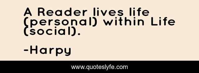 This page presents the quote "A Reader lives life (personal) within Life (social).". Author of this quote is Harpy. This quote is about life, life-and-living, sacred-life,.