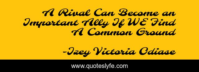 This page presents the quote "A Rival Can Become an Important Ally If WE Find A Common Ground". Author of this quote is Izey Victoria Odiase. This quote is about motivation, inspire, quote-of-the-day, motivational, confidence, competition, quotes, teamwork, optimistic,.
