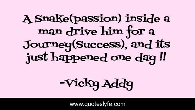 This page presents the quote "A Snake(passion) inside a man drive him for a Journey(Success), and its just happened one day !!". Author of this quote is Vicky Addy. This quote is about success-self-improvement, success,.
