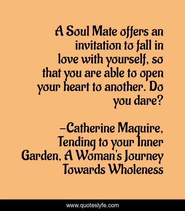 "Catherine Maguire, Tending to your Inner Garden, A Woman's Journey Towards Wholeness Quotes." Quoteslyfe.com, 2025. Sat. 06 Dec. 2025. <https://www.quoteslyfe.com/quote/A-Soul-Mate-offers-an-invitation-to-172743>.