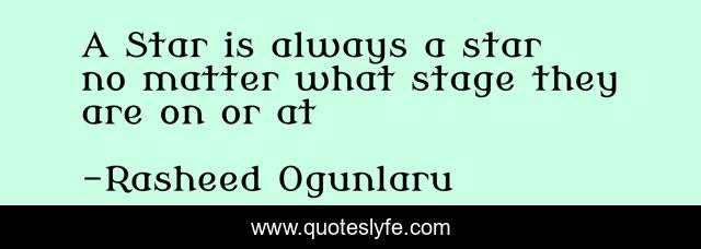 "Rasheed Ogunlaru Quotes." Quoteslyfe.com, 2025. Sun. 07 Dec. 2025. <https://www.quoteslyfe.com/quote/A-Star-is-always-a-star-no-38315>.
