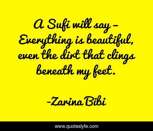 This page presents the quote "A Sufi will say – Everything is beautiful, even the dirt that clings beneath my feet.". Author of this quote is Zarina Bibi. .