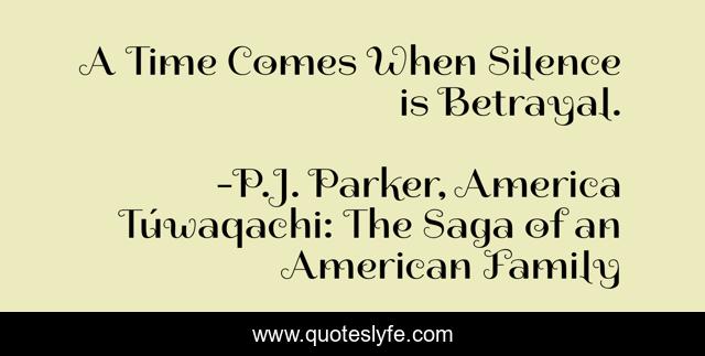 "P.J. Parker, America Túwaqachi: The Saga of an American Family Quotes." Quoteslyfe.com, 2025. Sat. 06 Dec. 2025. <https://www.quoteslyfe.com/quote/A-Time-Comes-When-Silence-is-Betrayal-148486>.