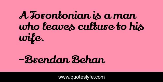 This page presents the quote "A Torontonian is a man who leaves culture to his wife.". Author of this quote is Brendan Behan. This quote is about canada, canadians,.